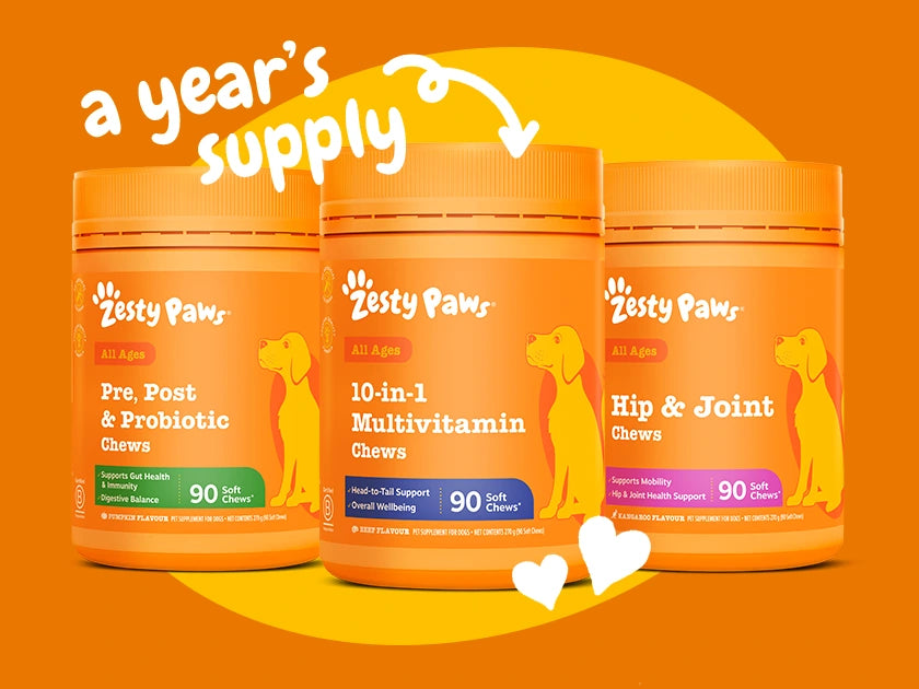 Second Prize (1 winner): “Year’s Supply of Zesty Paws” valued at AUD$839.88, comprising 12 x Zesty Paws 90ct Soft Chews (winner’s chosen variety, delivered quarterly).