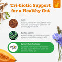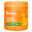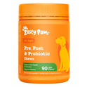 Probiotics are beneficial bacteria found in certain foods or supplements – like our Zesty Paws Pre, Post, and Probiotic Chews. They can help digestion and support in balancing your pet’s gut flora. Prebiotics are types of fibre that feed the friendly bacteria in your dog’s digestive system. Our three-pronged formula contains a unique blend of pre, pro and postbiotics that can boost the immune system and promote great gut health.